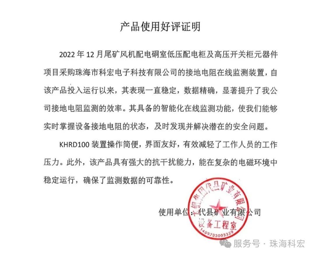 近日,太鋼集團(tuán)代縣礦業(yè)對我司的接地電阻在線監(jiān)測裝置給予了高度評價,這一反饋無疑是對我們產(chǎn)品性能和服務(wù)質(zhì)量的有力肯定。